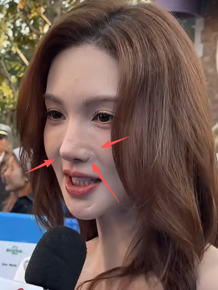 面对金晨高清怼脸拍,不止一位网友发现,金晨的鼻子越来越不对劲,特别是鼻翼附近,好明显的疤痕啊,妆浓到卡粉都遮不住了。